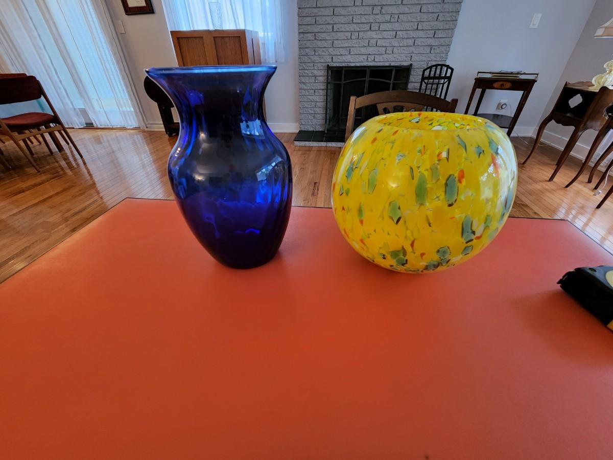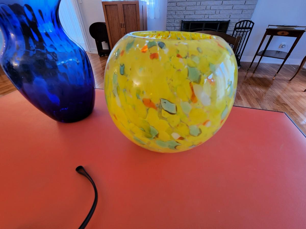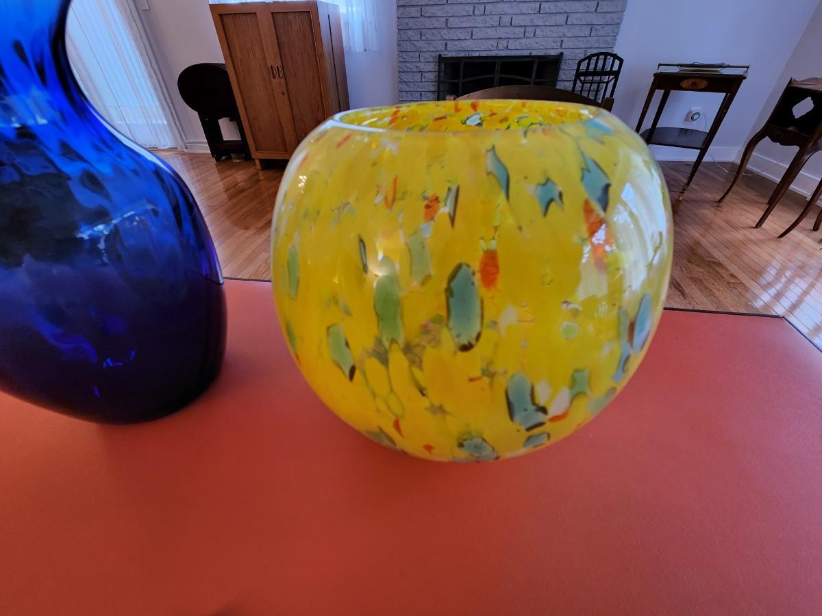 2 pc lot Art Glass Blue Vase Yellow Bowl