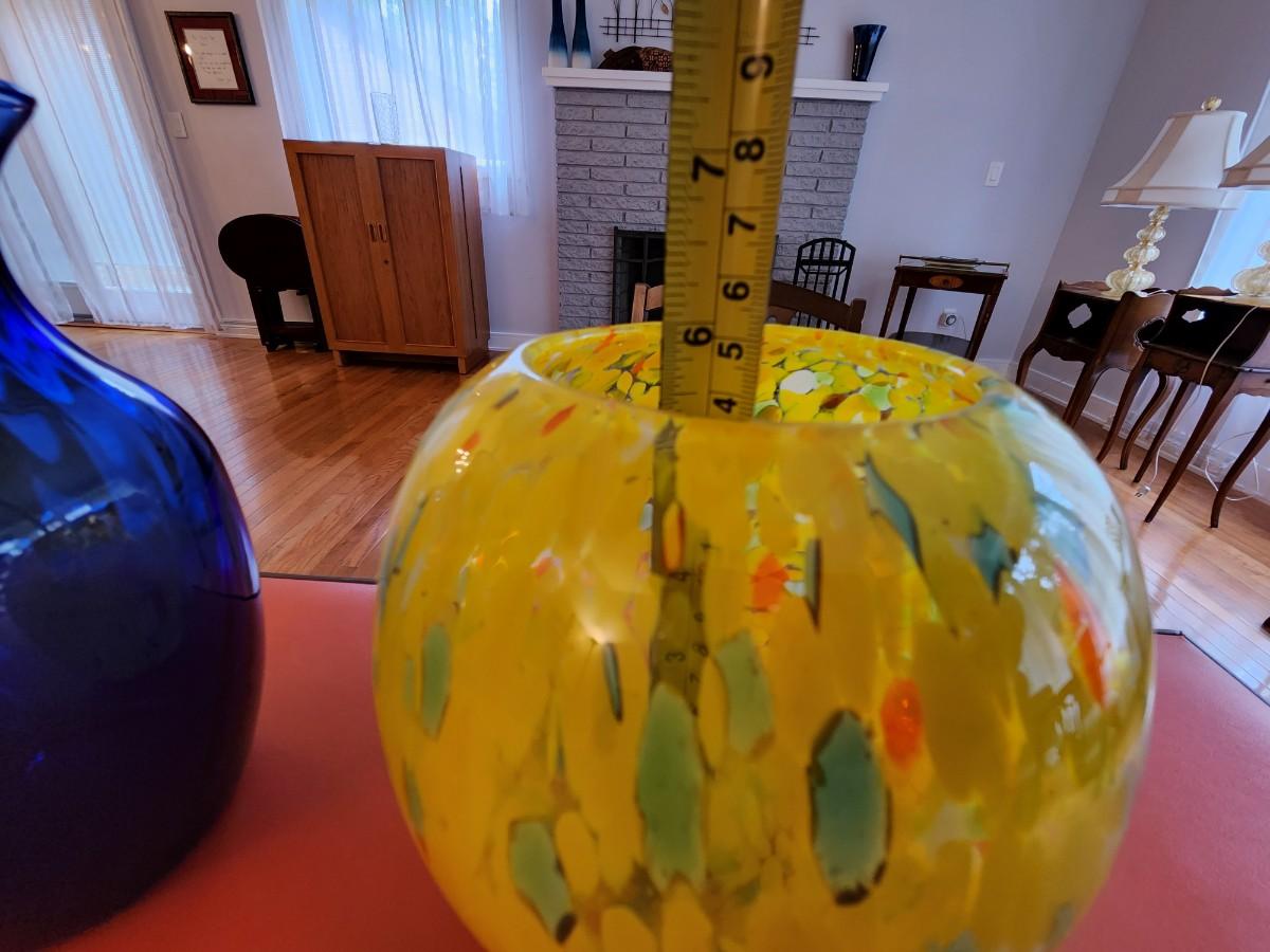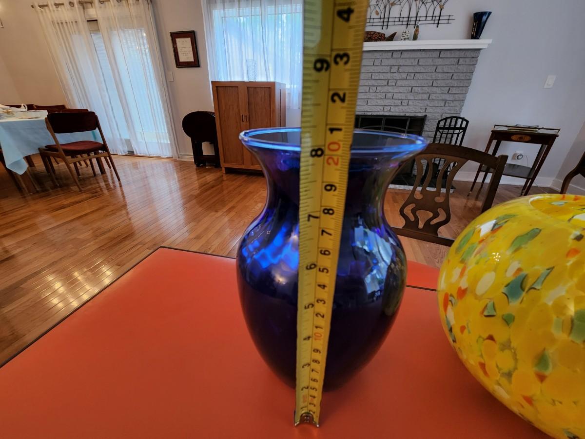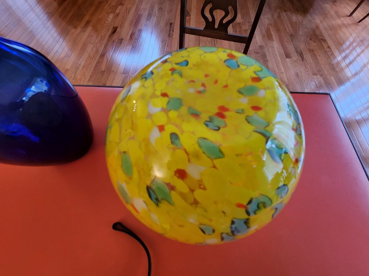 2 pc lot Art Glass Blue Vase Yellow Bowl
