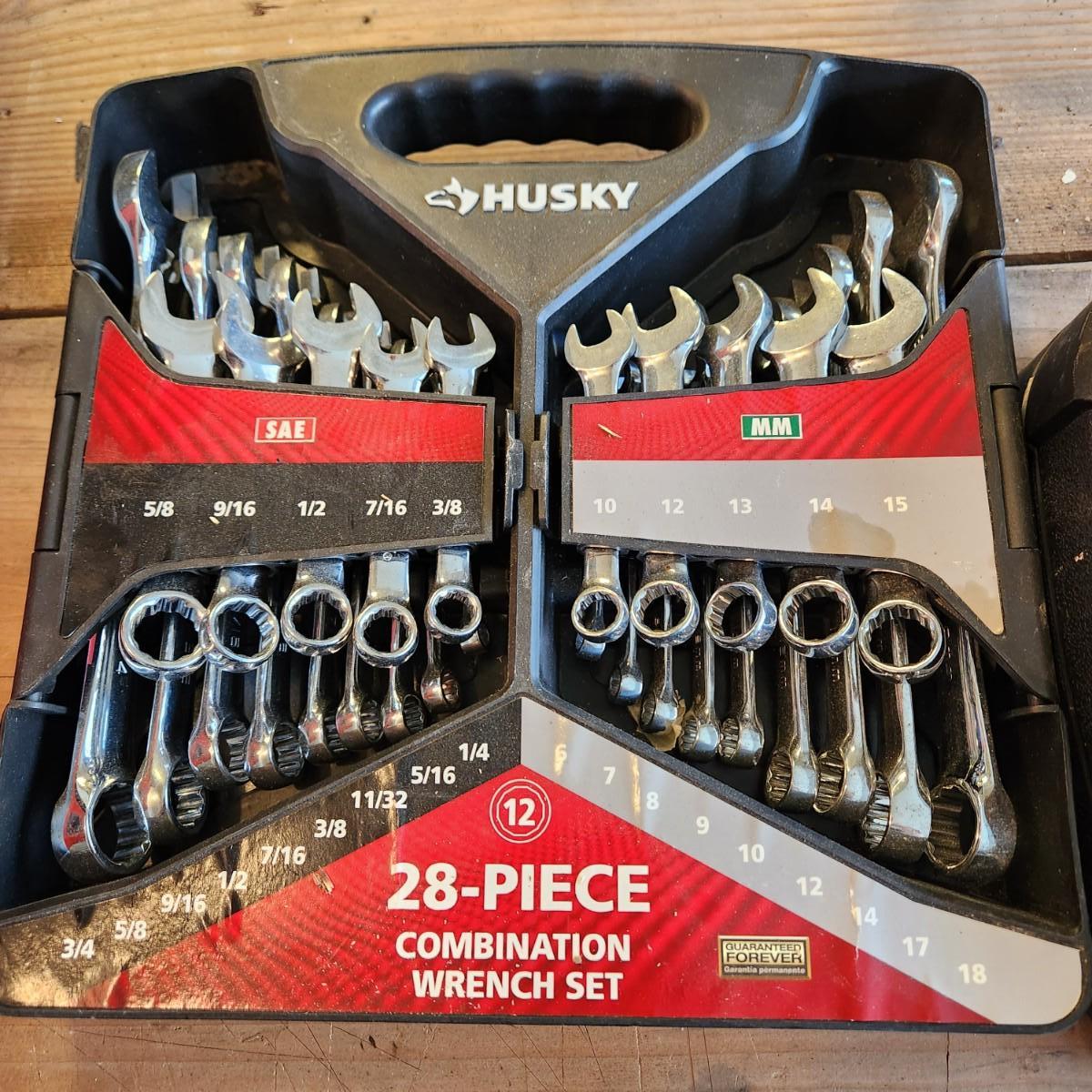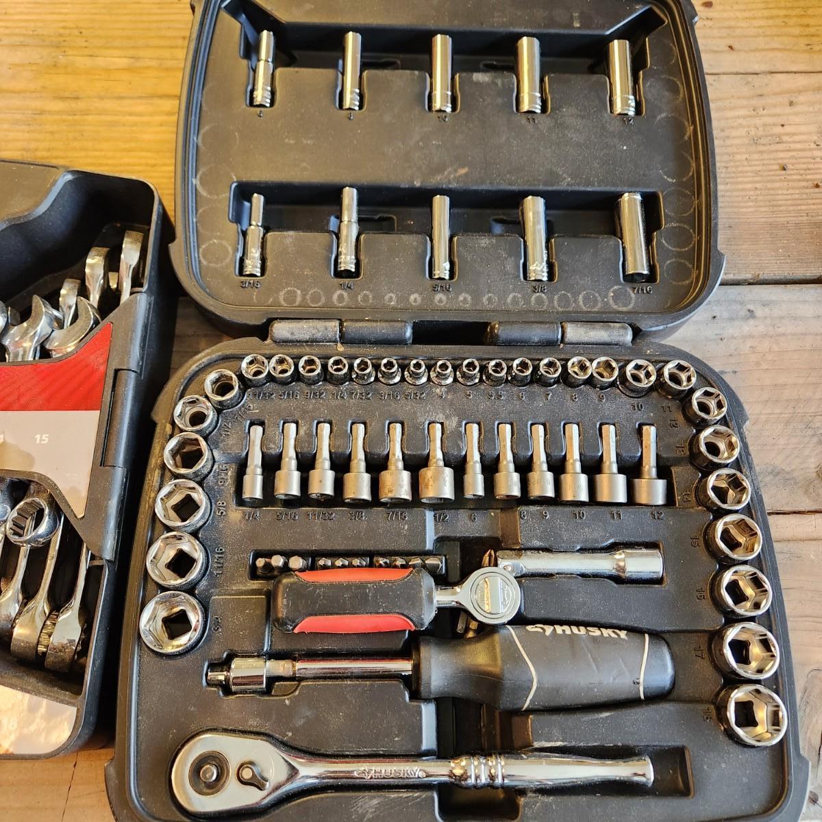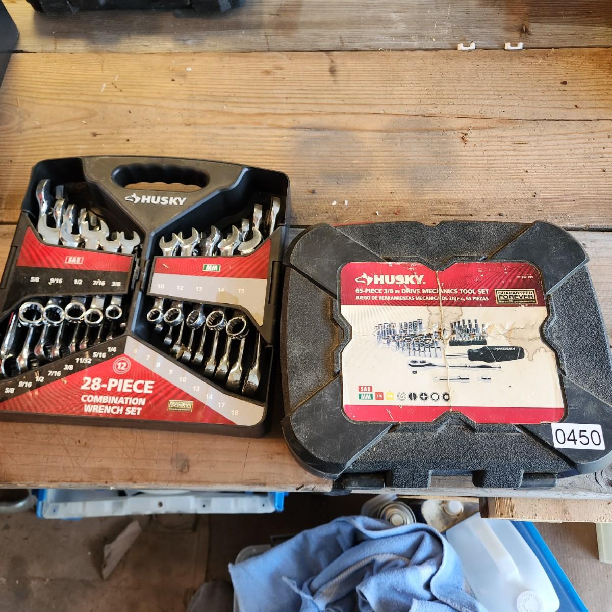 2 pc lot Husky 3/8 Drive Tool set & Combination Wrench Set