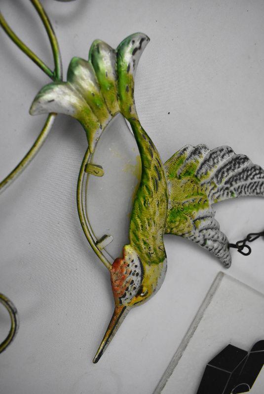 2 pc Metal Wind Chimes. 1 Hummingbird w/ Flowers 1 Pig