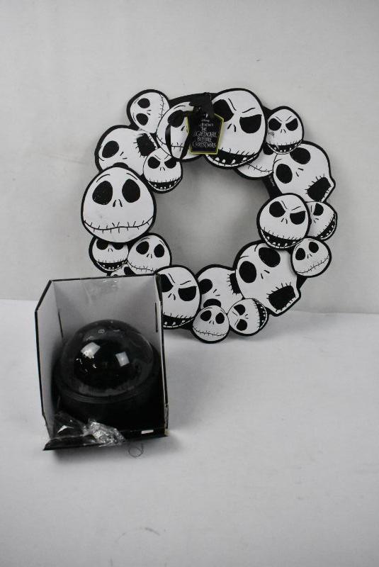 2 Pc Nightmare Before Christmas Decor: Multicolor LED WhirlAMotion & Jack Wreath