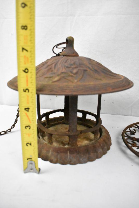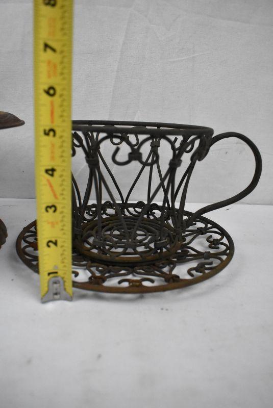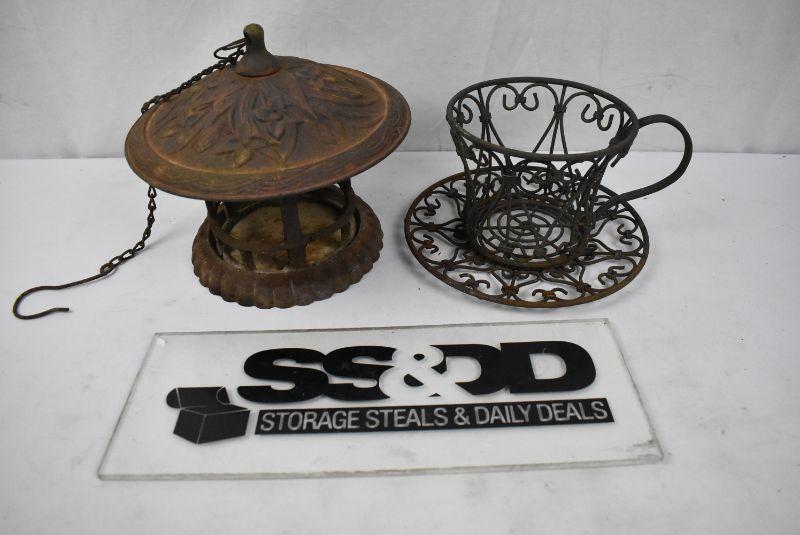2 pc Outdoor Decor: Metal Bird Feeder & Metal Teacup