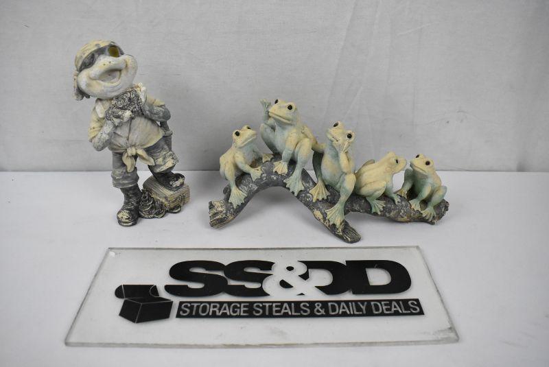 2 pc Outdoor Garden Frogs Decor: Pirate Frog & 5 Frogs on a log