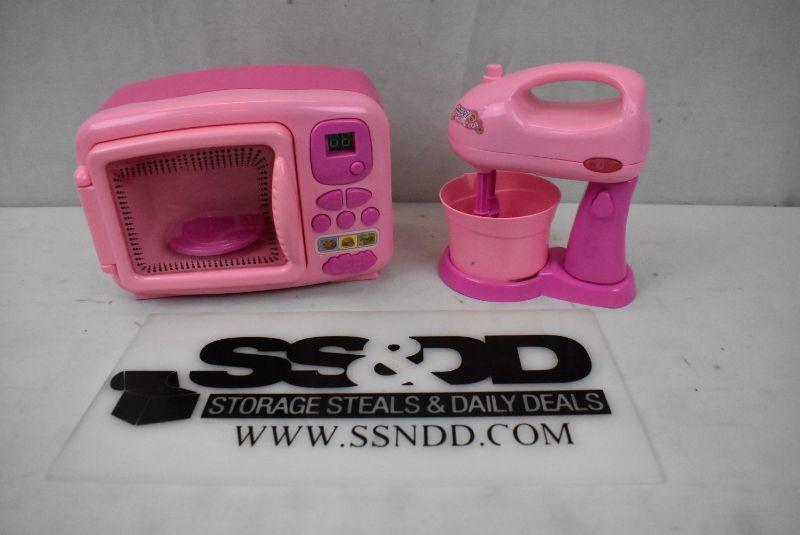 2 pc Pink Play Kitchen Toys: Microwave & Stand Mixer