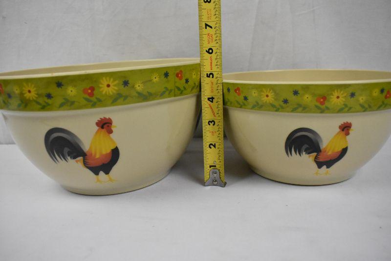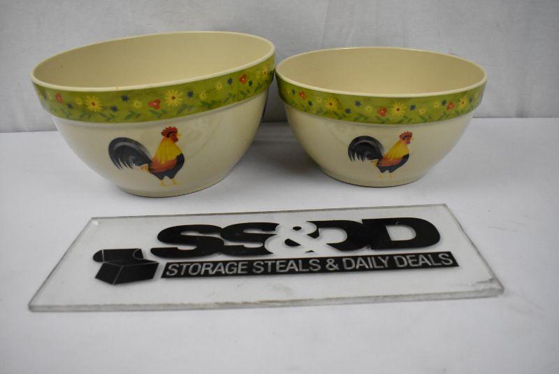 2 pc Plastic Bowls, Floral & Rooster Theme