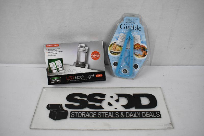 2 pc Reading Accessories: LED Book Light & Gimble Book Holder - New