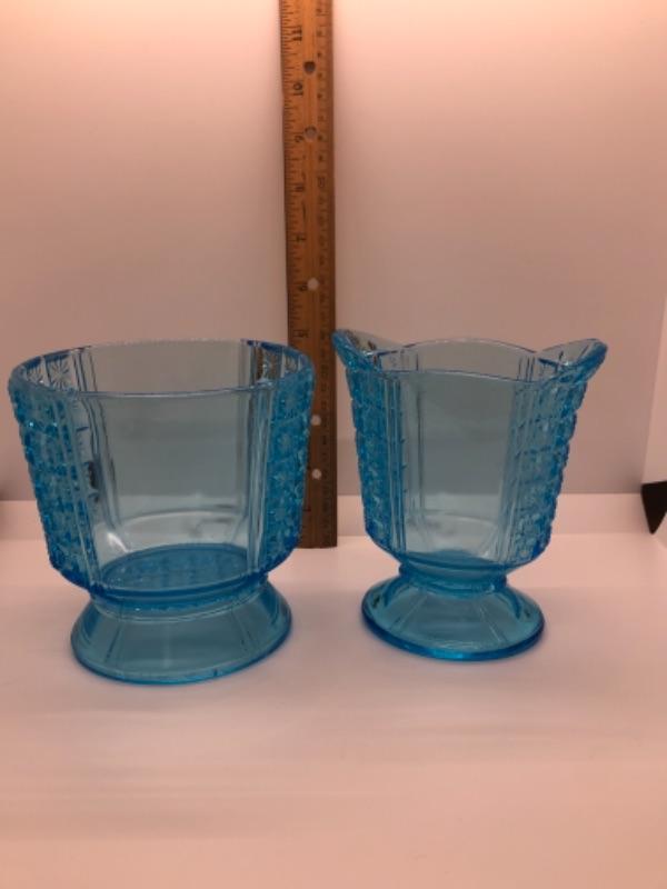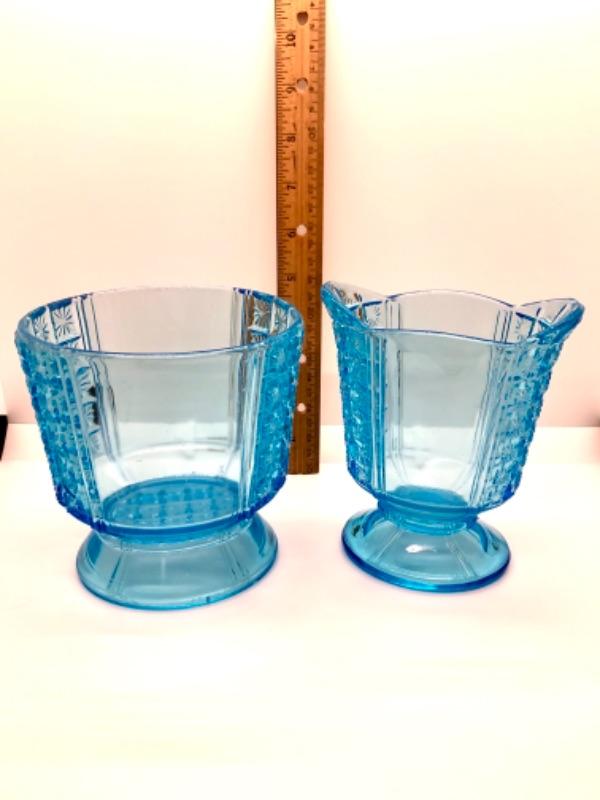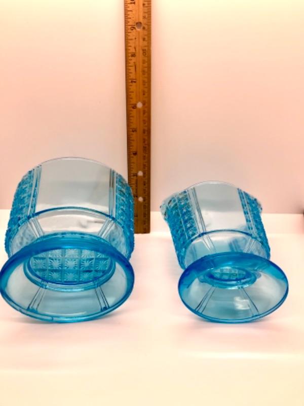 2 pc set of vintage pressed glass, sky blue color