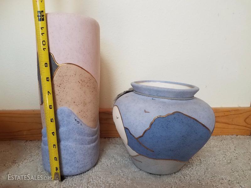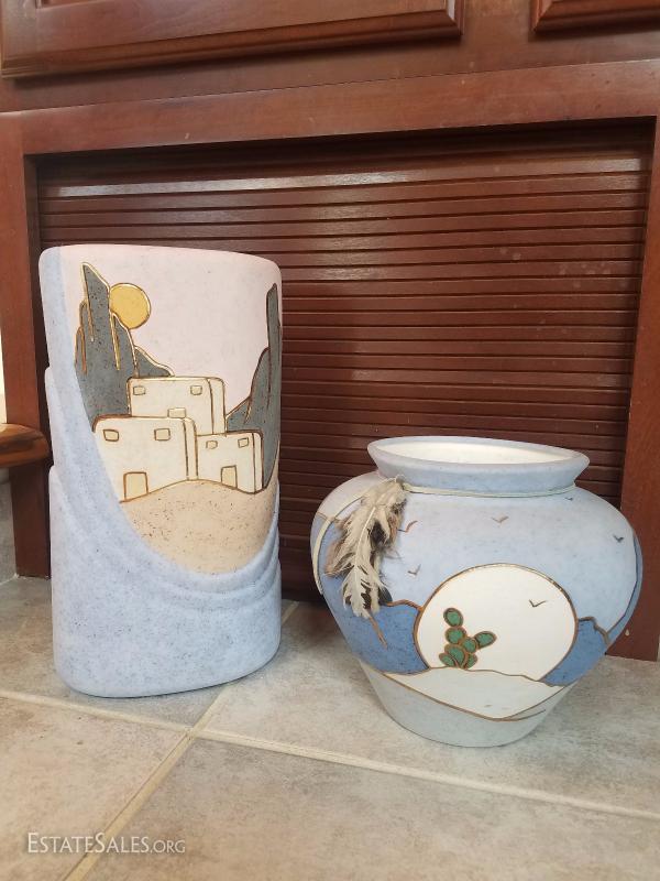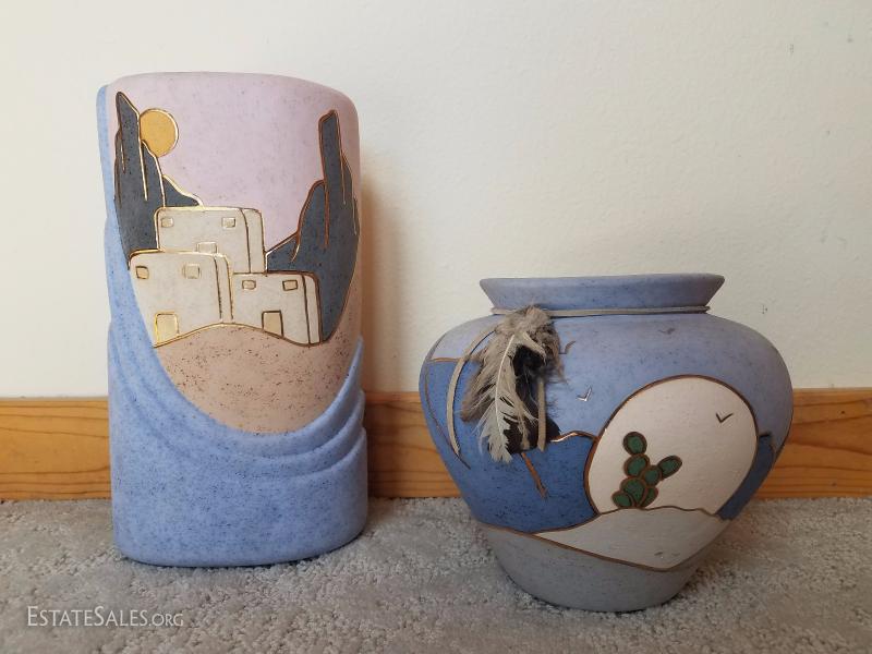 A4 2 Pc Southwest Pottery Artist Signed Decorative Vases