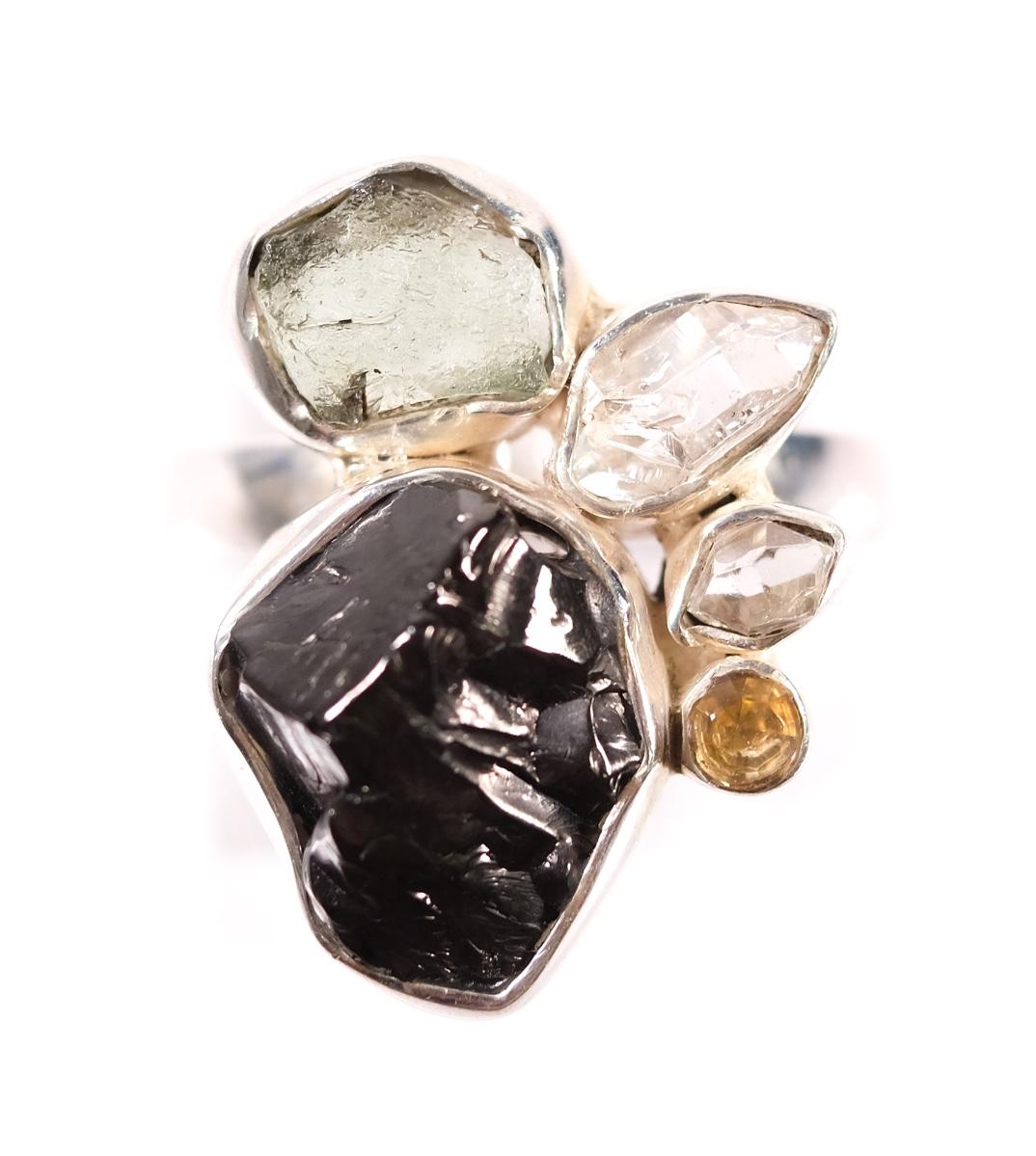 2 PC Sterling Moldavite & Shungite Pendant and Ring, size 9.25