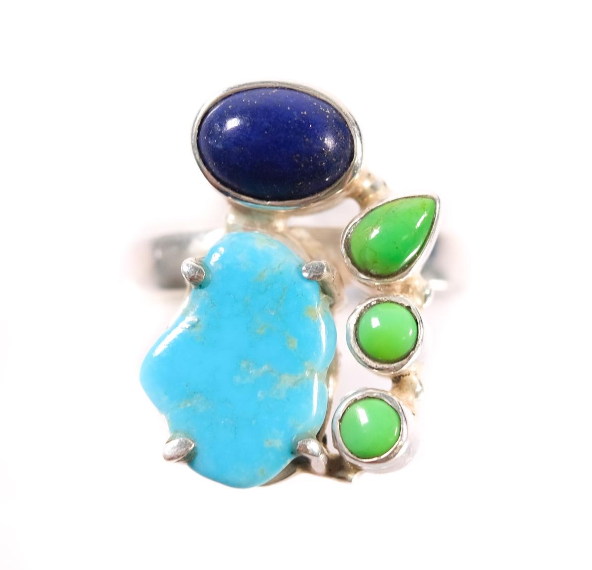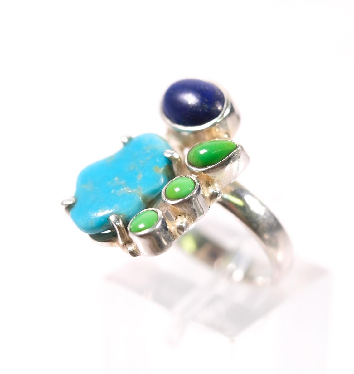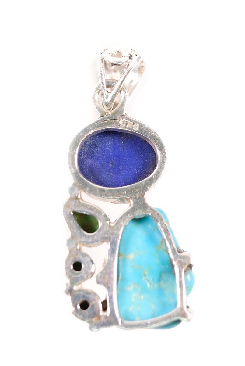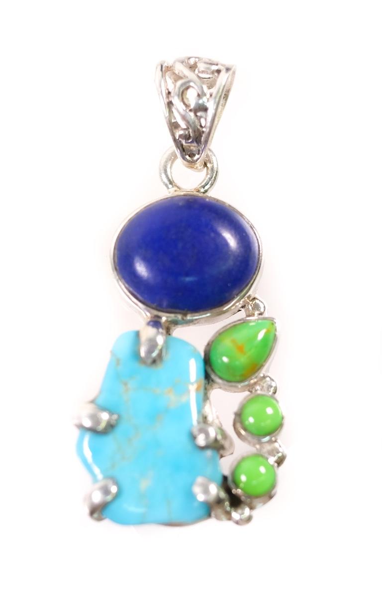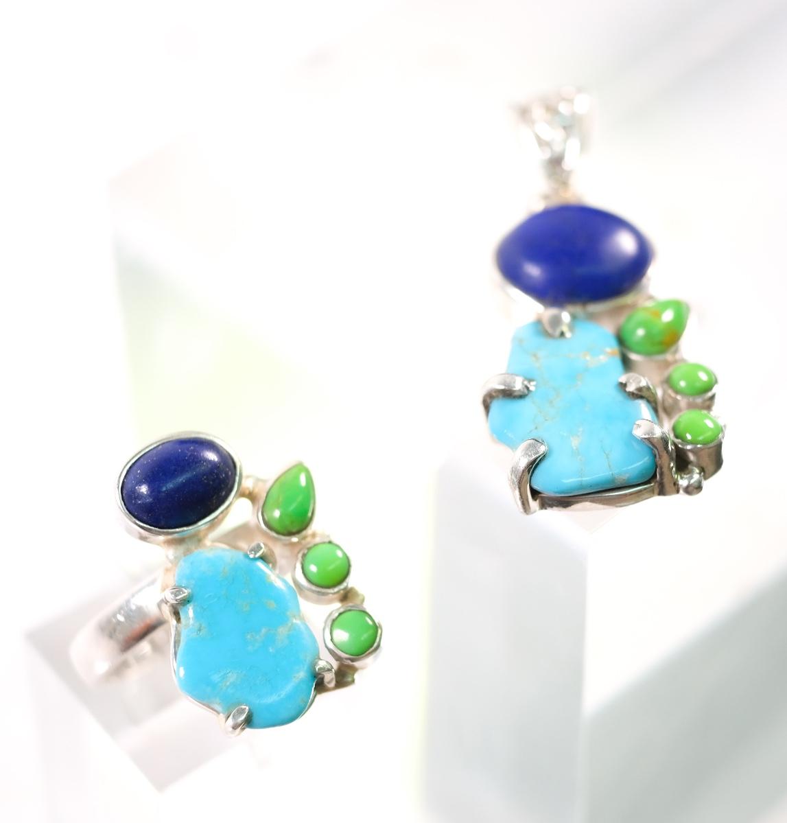 2 PC Sterling Turquoise, Gaspeite and Lapis Pendant & Ring, Size 6