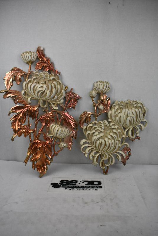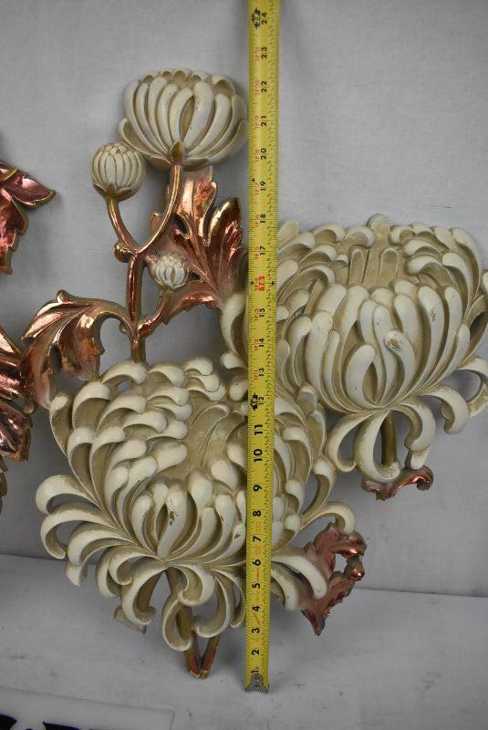 2 pc Syroco Wood Wall Decor Mums MCM 1960s - Vintage