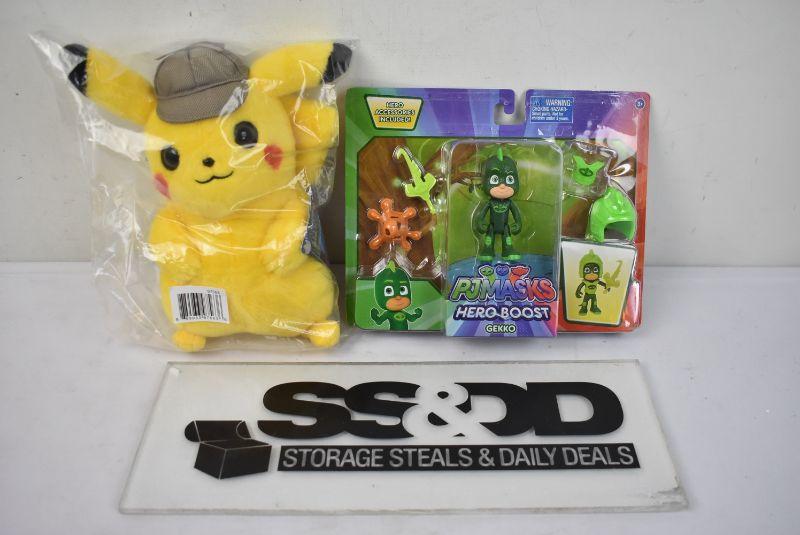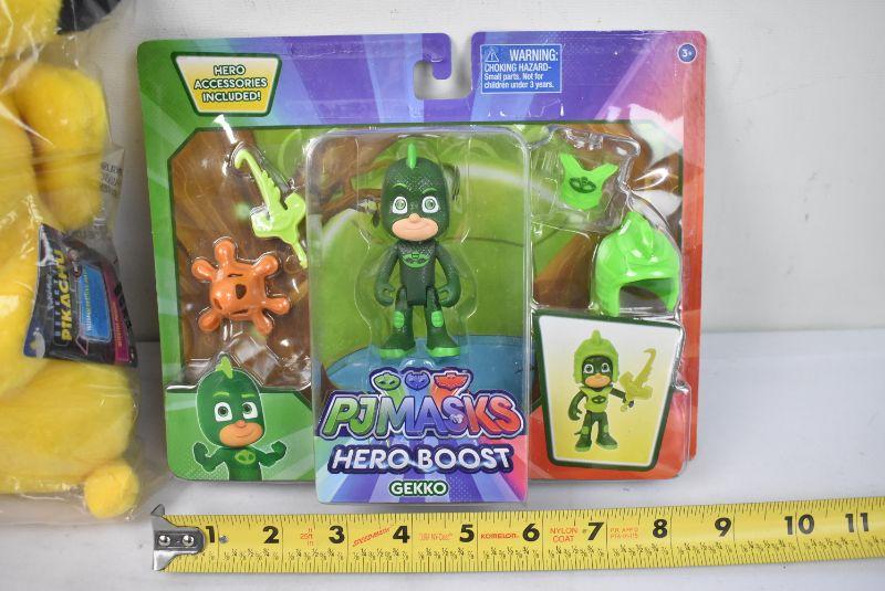 2 pc Toys: Detective Pikachu 8" Plush Pikachu AND PJ Masks Hero Boost Figure Set - Gekko, $29 Retail - New