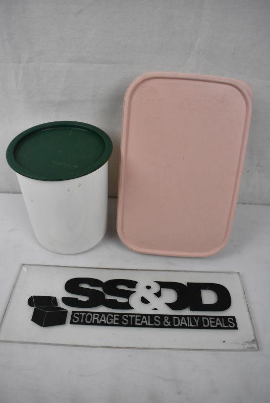2 pc Tupperware (Vintage?) Green/White & Pink/Clear