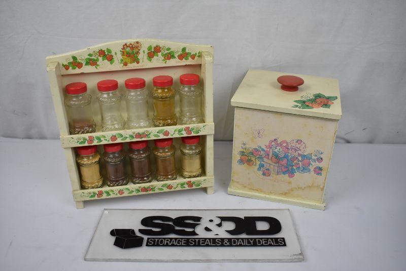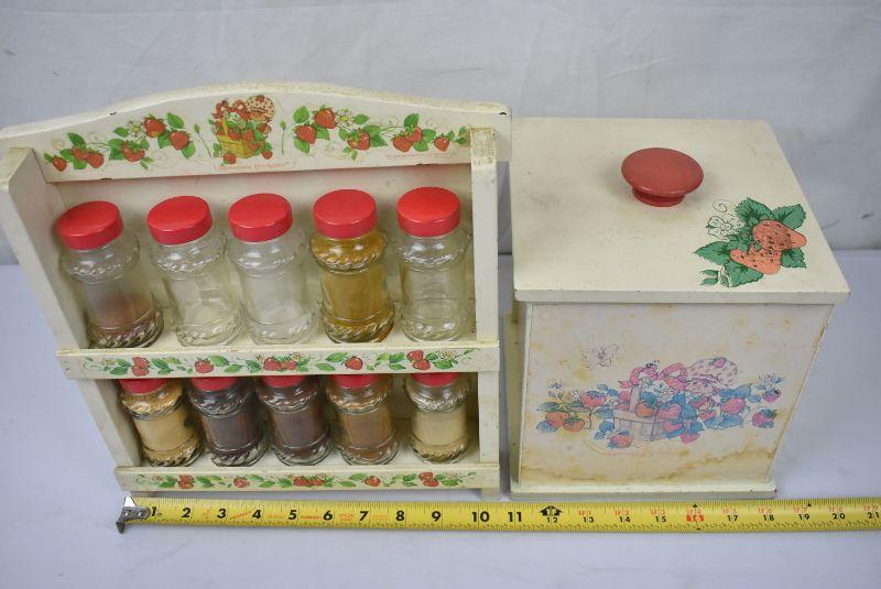 2 pc Vintage Strawberry Shortcake Kitchen: Spice Rack & Storage Box
