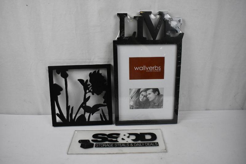 2 pc Wall Decor: Black Floral Silhouette, & "Live" Frame (holds two 4x6 images)