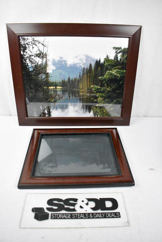 2 pc Wall Decor: Framed Image Outdoors, plastic, looks like cherry wood 20"x24" Wood & Glass Frame for 11x13 image.