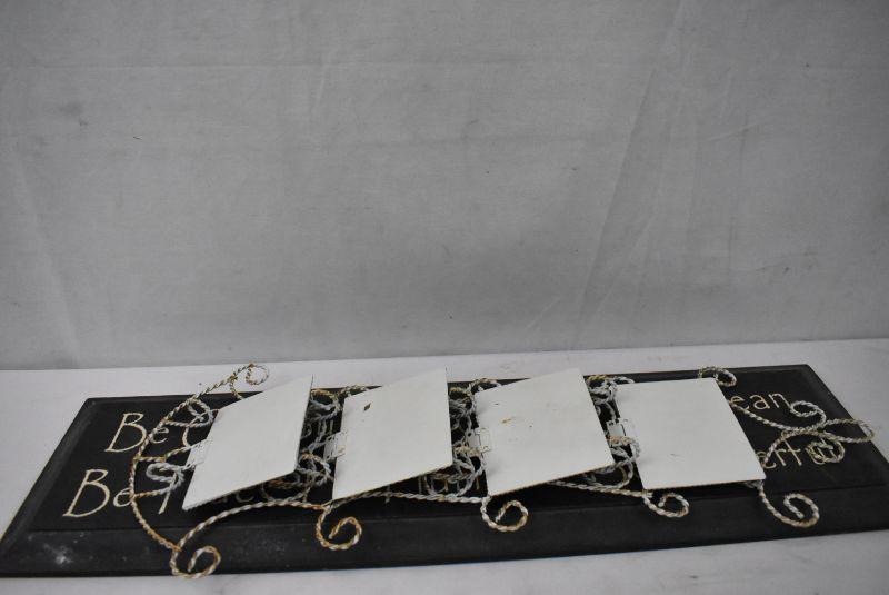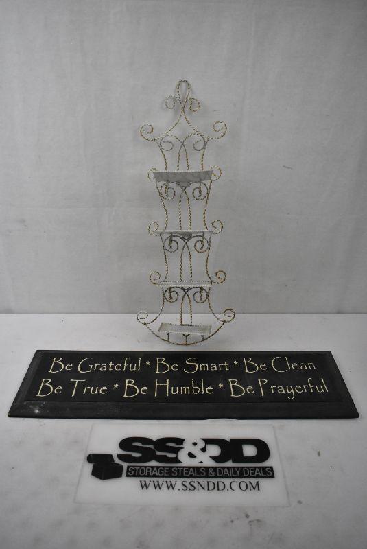 2 pc Wall Decor: Metal Fold Down Shelves, & Black Be Grateful...