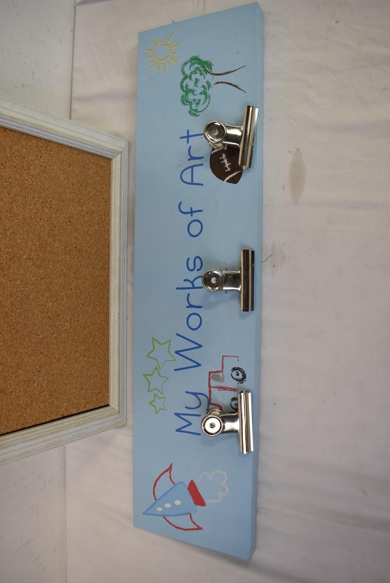 2 pc Wall Decor: "My Works of Art" Clips, Corkboard