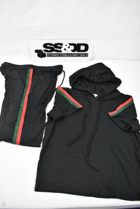 2 pc Women's Loungewear, Black w/ Red & Green Stripes. Marked Size Large, looks to run small like a S/M - New