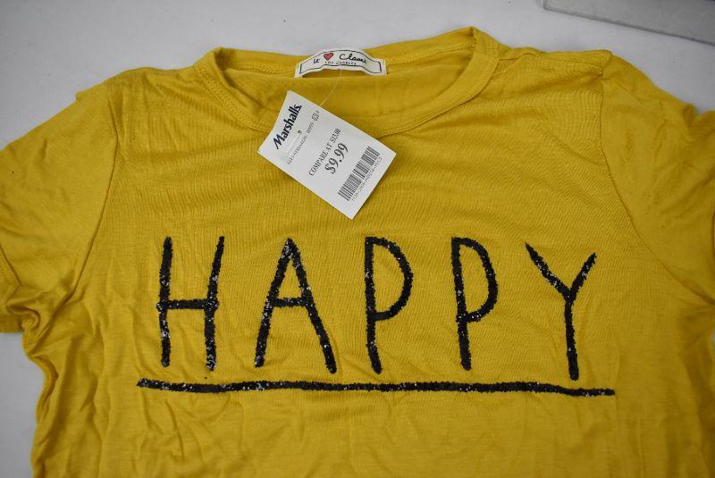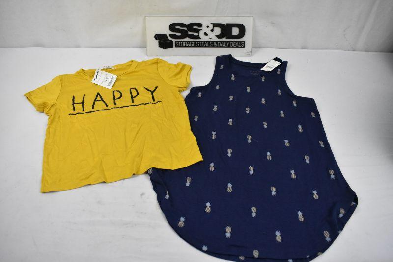 2 pc Women's Tops. Small Mustard "Happy" and XS Navy w/ Pineapples - New