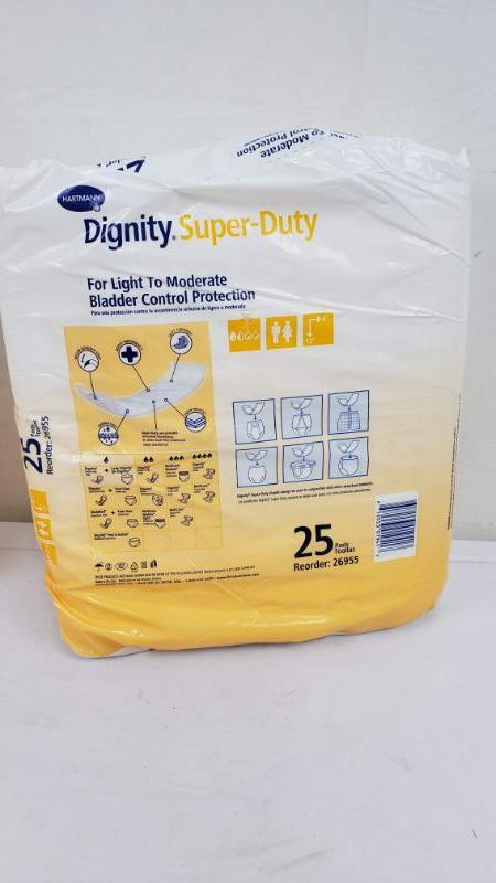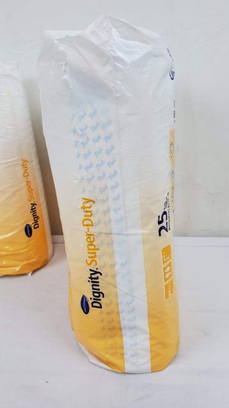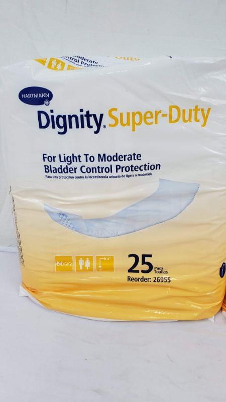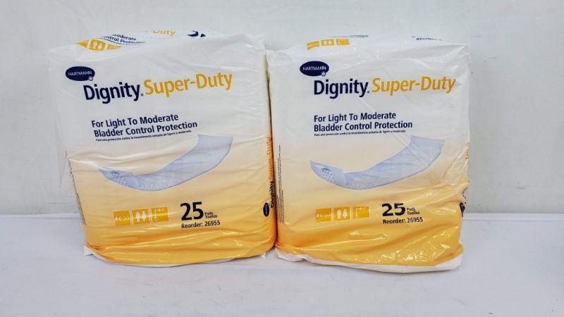 2 Packages of 25 Count Pads, Dignity Super-Duty, For Light to Moderate Bladder Control Protection - New