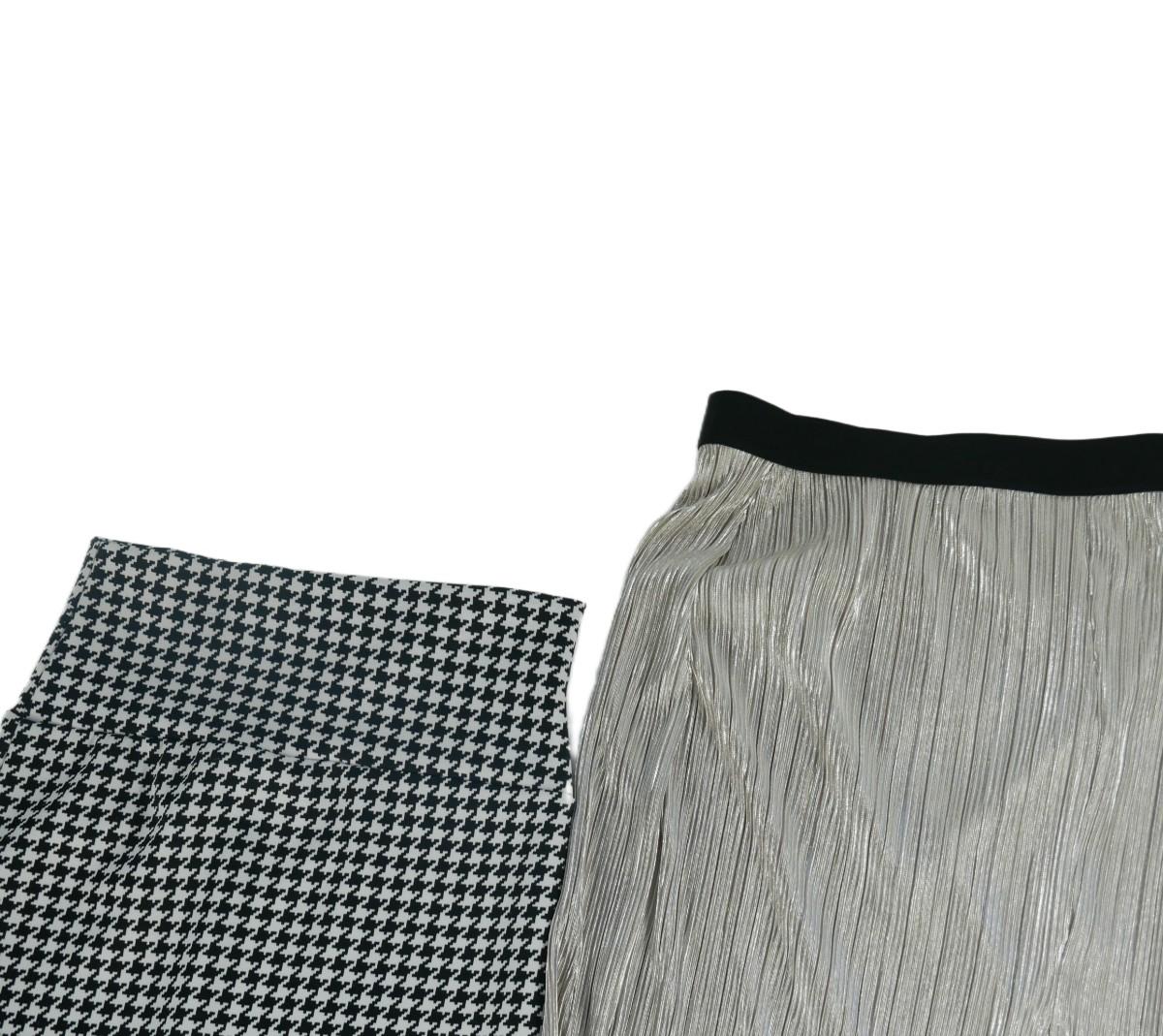 Two women's skirts in size small, one houndstooth patterned and one shimmery maxi style.