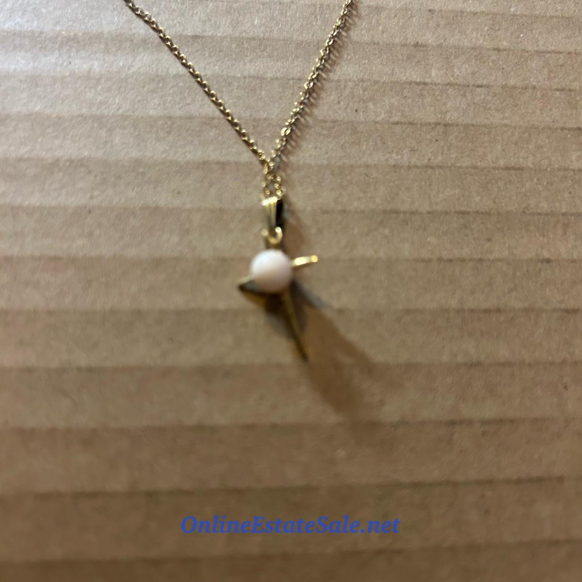 16in Gold Colored Chain with Pearl Cross with Box Clasp