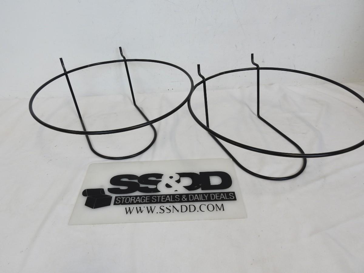 2 Peg Board Ball Holders: Top 13" Round, Bottom 6"x8" Black Metal