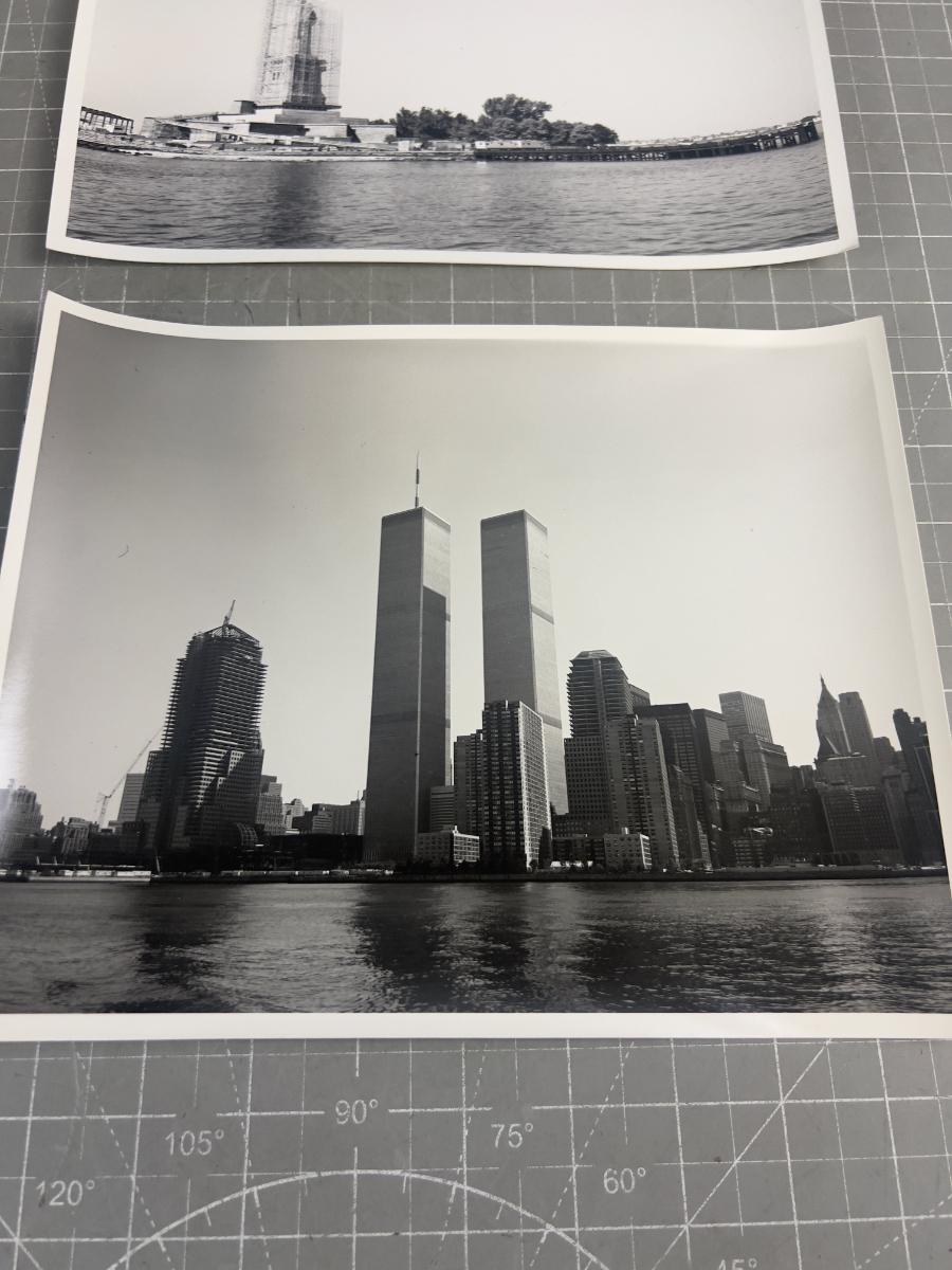 2 Photographs World Trade Towers and Statue of Liberty