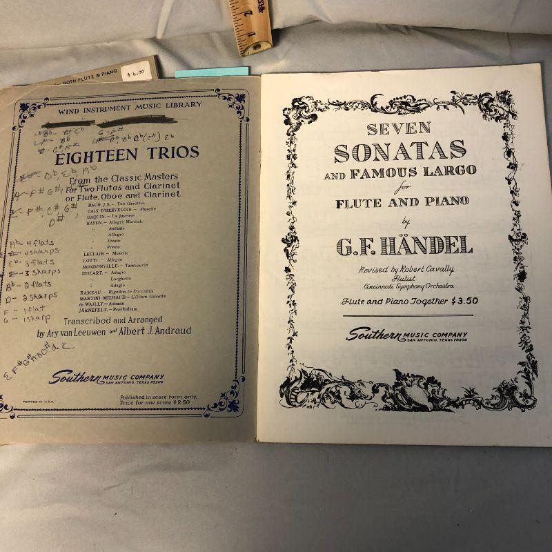 The one book indicates a copyright of 1958, the other doesn't have anything to identify it's age. Neither appears to have any missing or torn pages. The Seven Sonatas book does have some handwriting on the inside front cover.