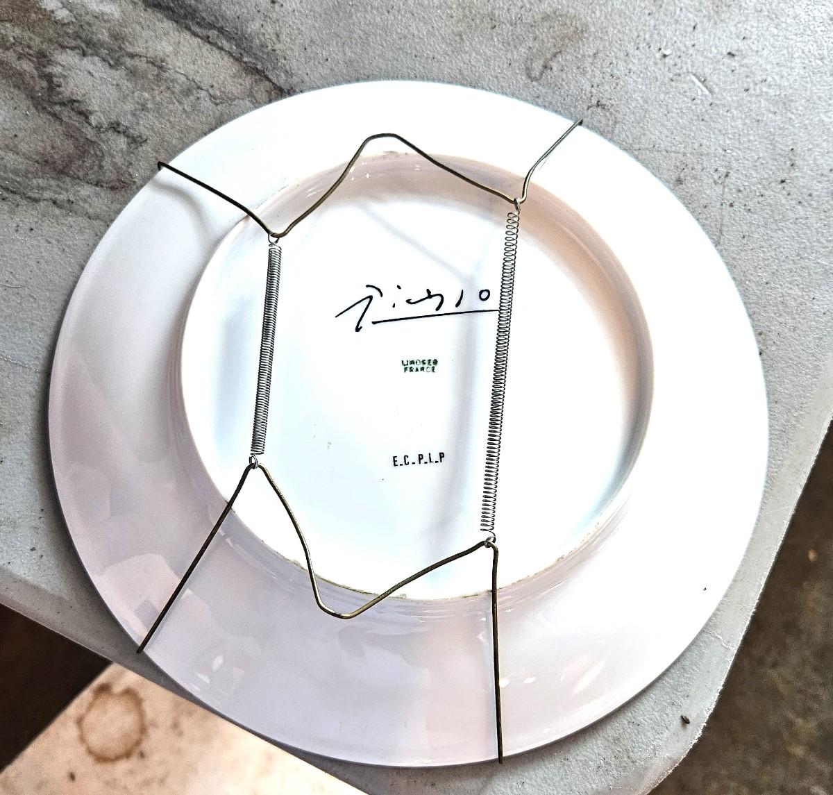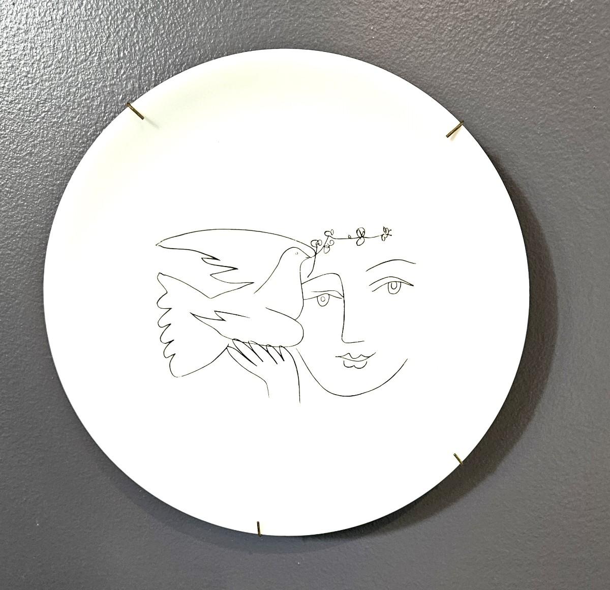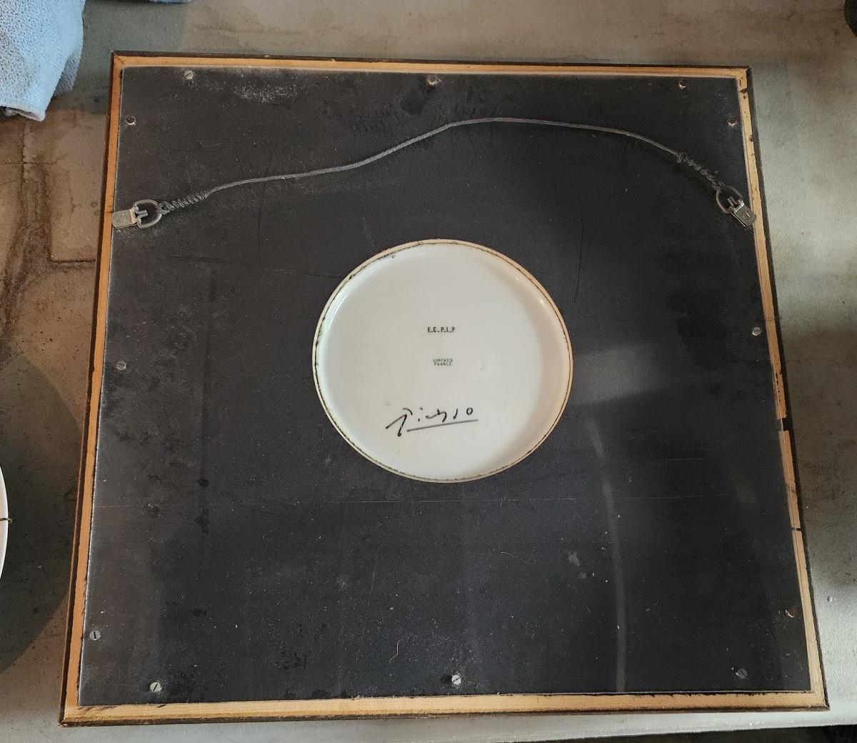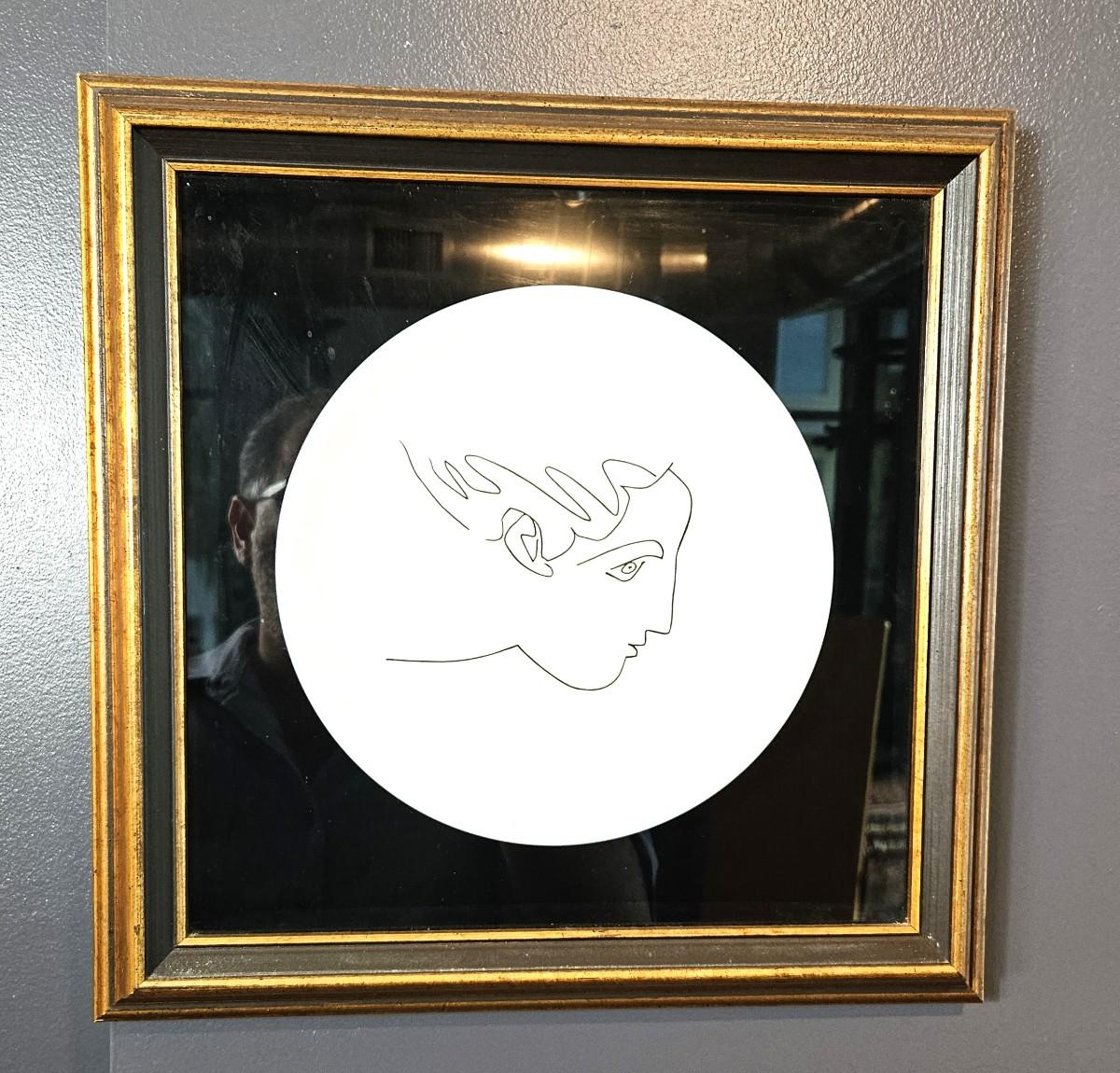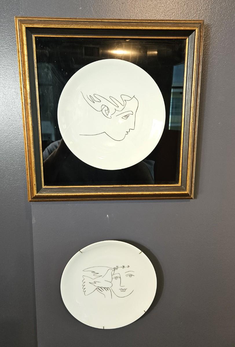 2 Picasso Line Drawings on Plates, Frame 16 x 16