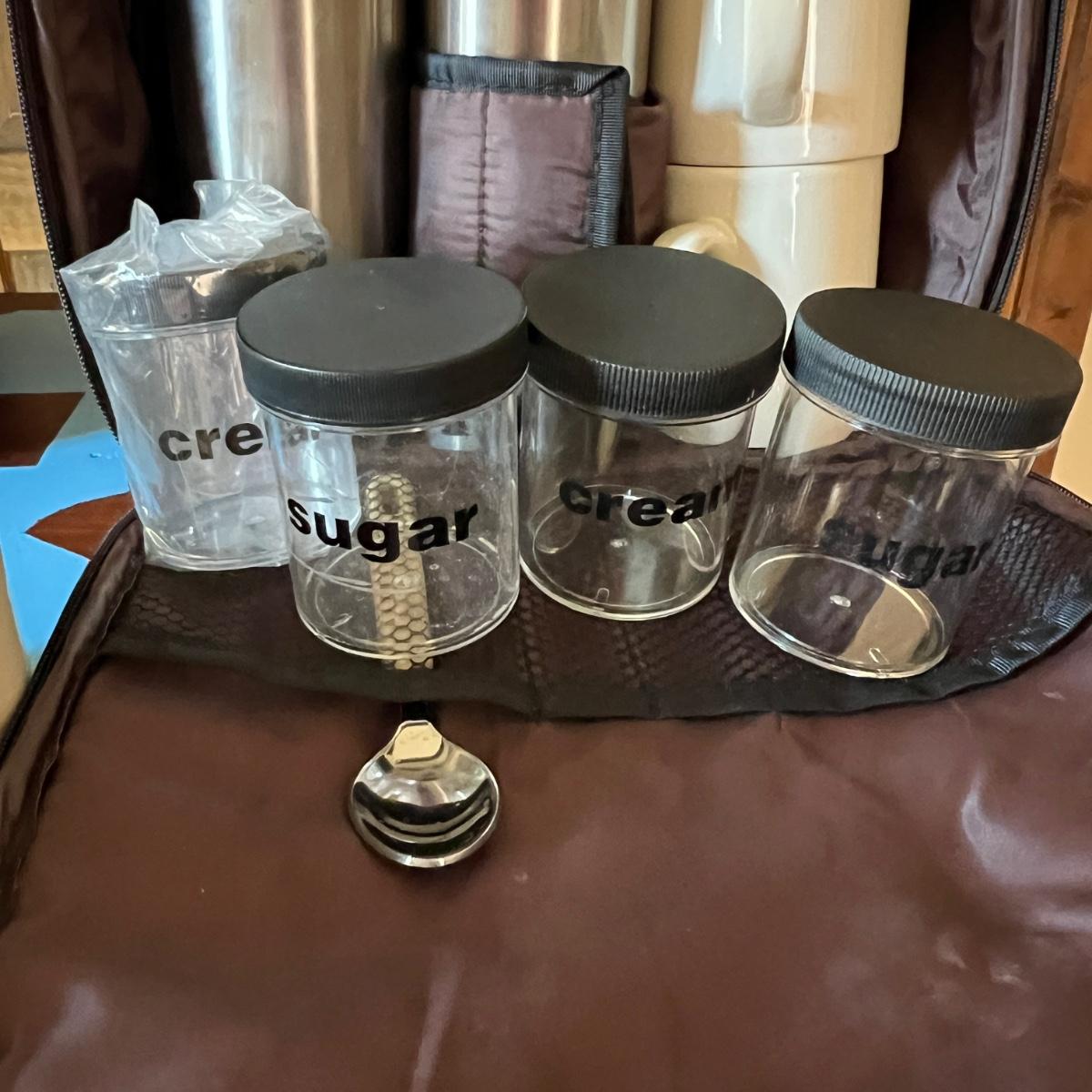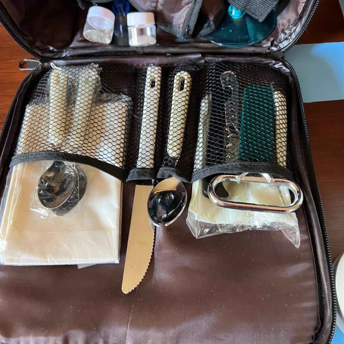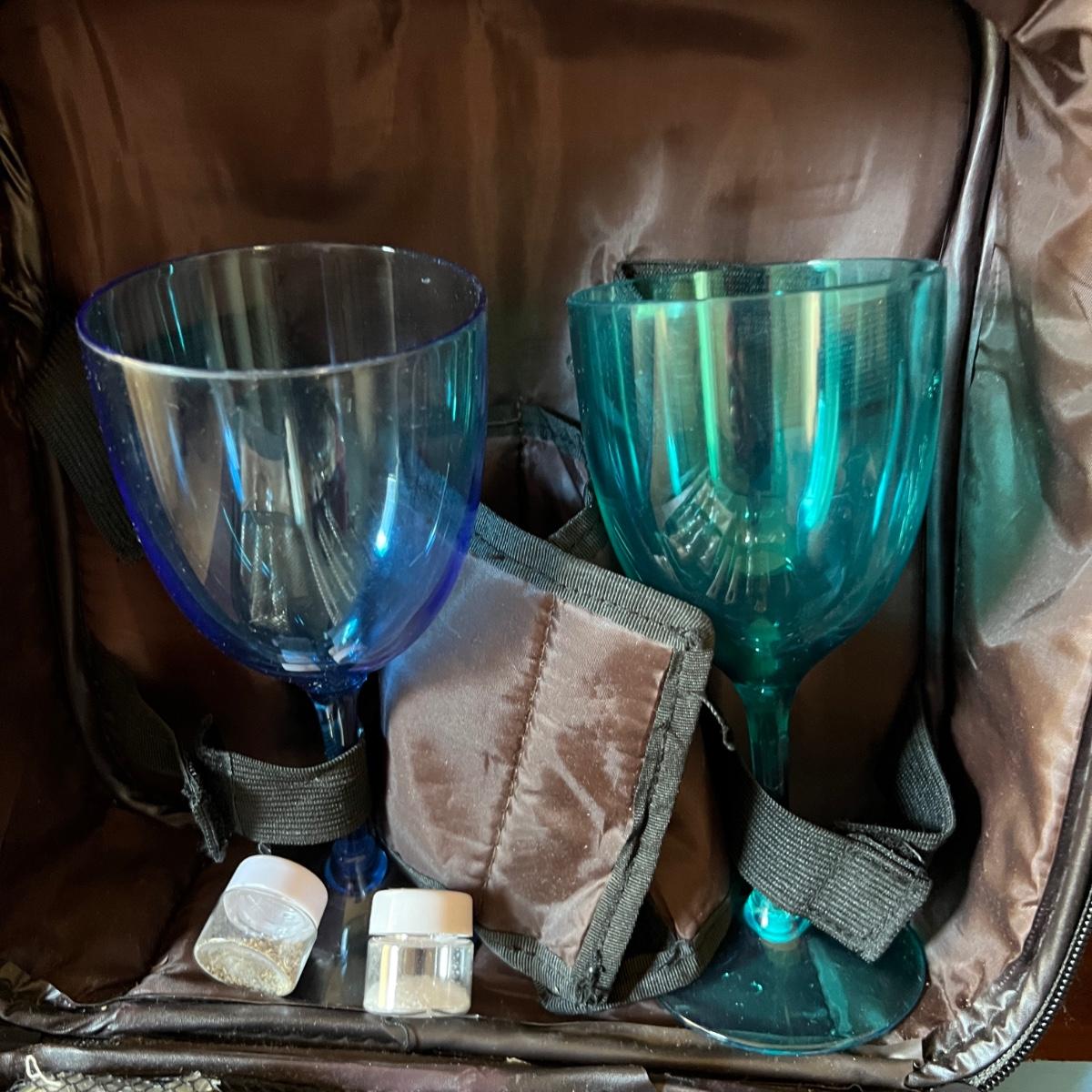 The side zipper on wine set won't close. Buying "as is - as found" in this wonderful estate. See ALL PHOTOS for content, condition, & dimensions. NEVER a Buyer's Premium or Credit Card Fee added.