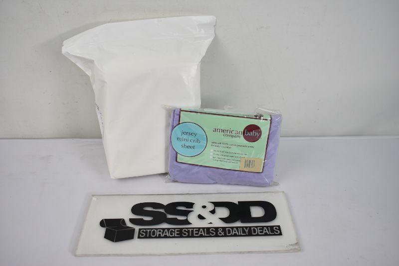 2 Piece Baby Supplies: Wipes Refill & Mini Crib Sheet, Purple - New