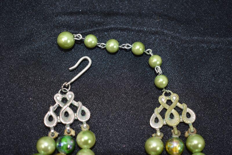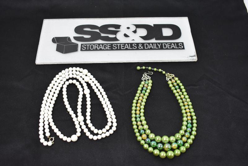 2 Piece Beaded Necklaces 1 Green/1 White - Vintage