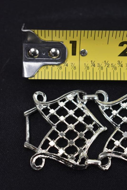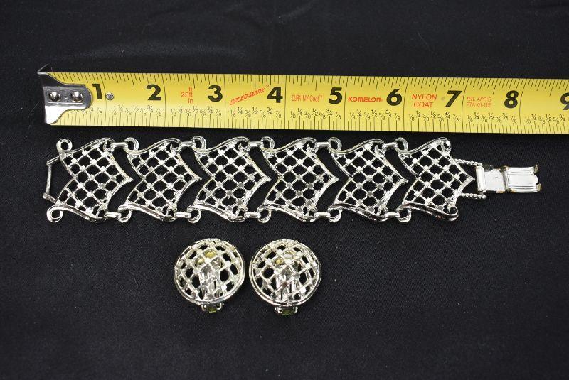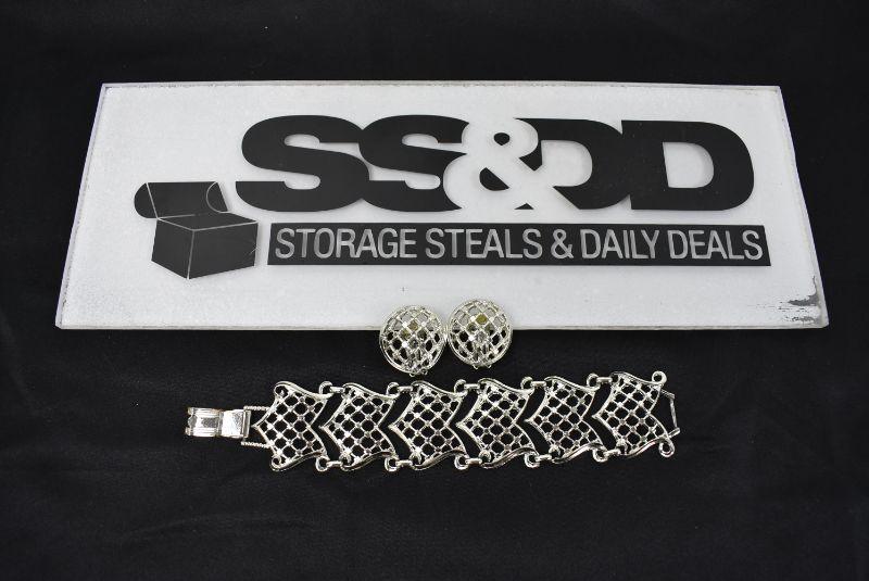 2 Piece Costume Jewelry: Silver Tone Bracelet & Clip-on Earrings - Vintage