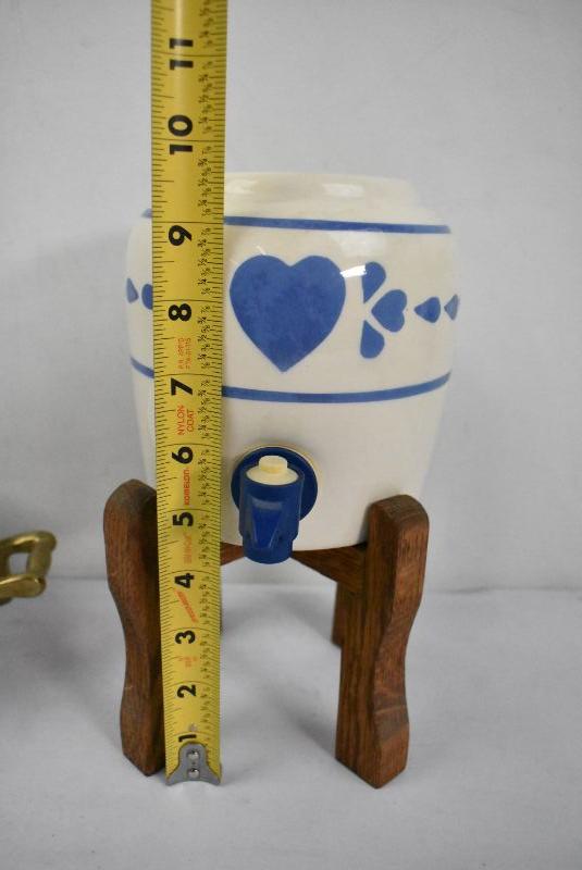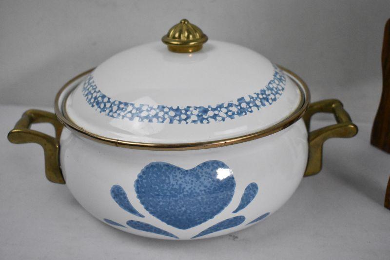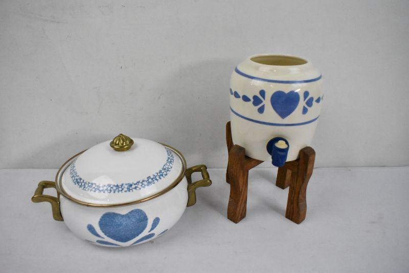 2 Piece Cream w/ Blue Hearts Kitchenware: Bakeware & Small Pitcher - Vintage