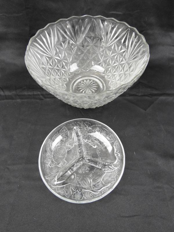 2 Piece Cut Glass, Large Serving Bowl and Grape Designed Split Serving Platter
