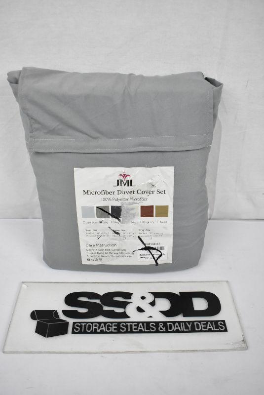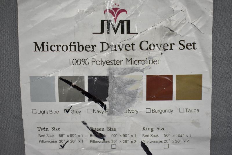 2 Piece Duvet Cover Set, Microfiber Duvet Cover & Sham, Twin, Gray, Open package, complete