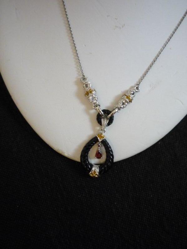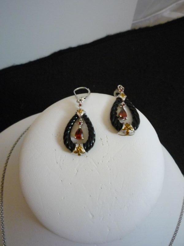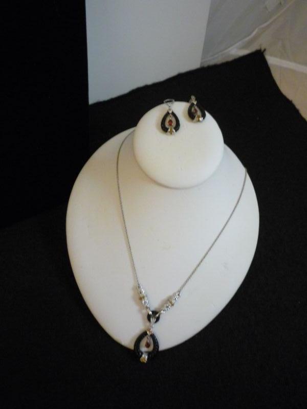 2 Piece Garnet and Sterling Silver Necklace and Earring Set