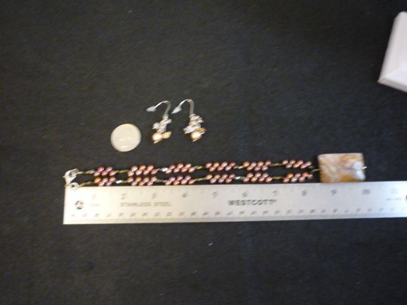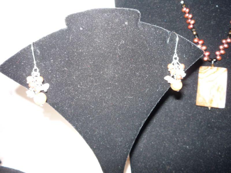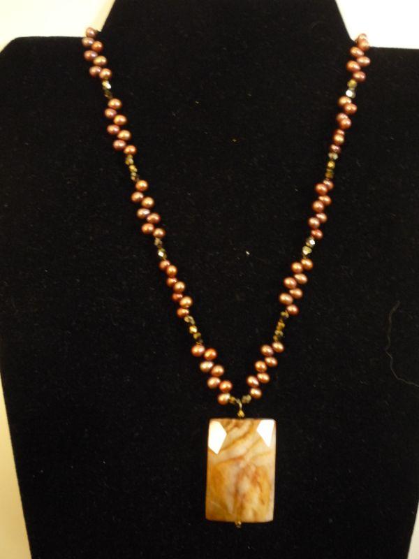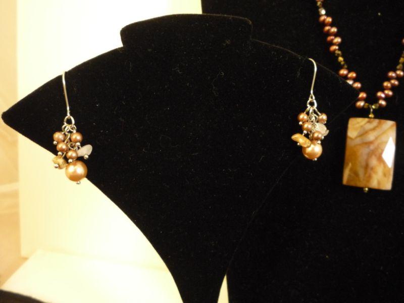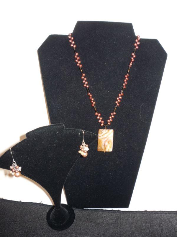 2 Piece Genuine Copper Color Pearl and Gemstone Pendant Necklace and Matching Earrings