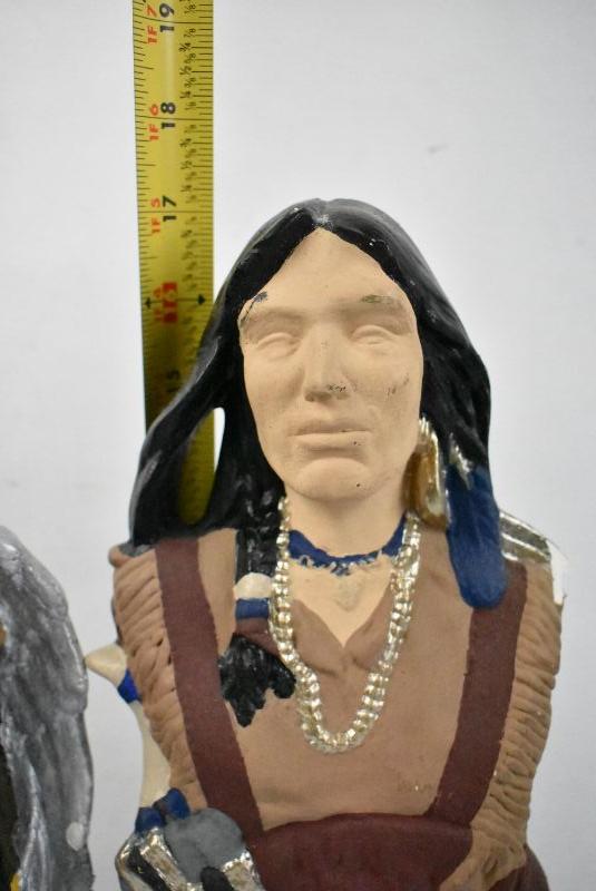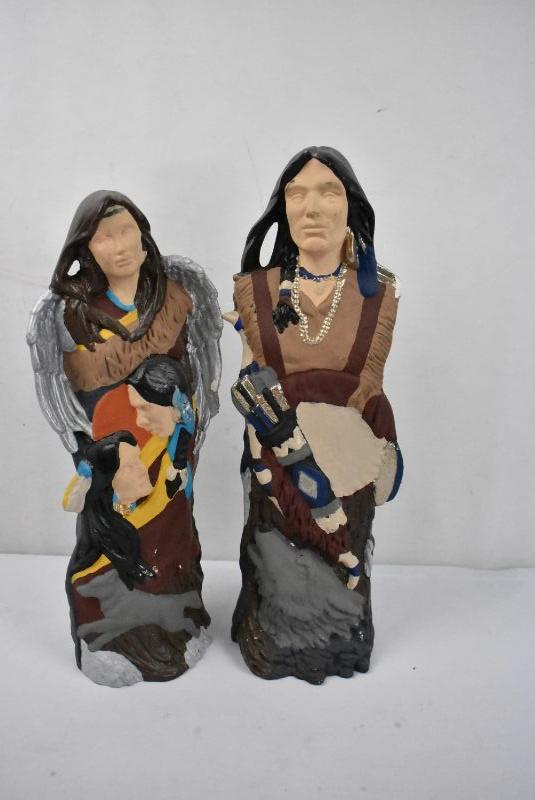 2 Piece Hand Painted Statuettes, Native American, Ceramic