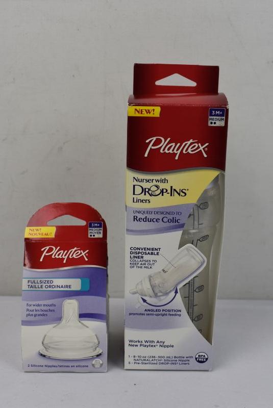 2 Piece Infant Bottle Lot: Nurser Bottle with Drop In Liners & 2 Wide Mouth Nipples - New