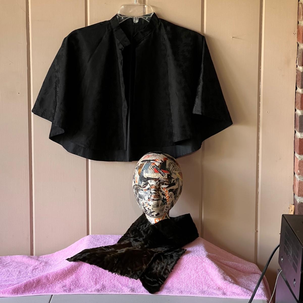 Vintage fur collar scarf has slit to wrap end through for closure. Antique Edwardian cape has sone damages shown in picture. Note head not included