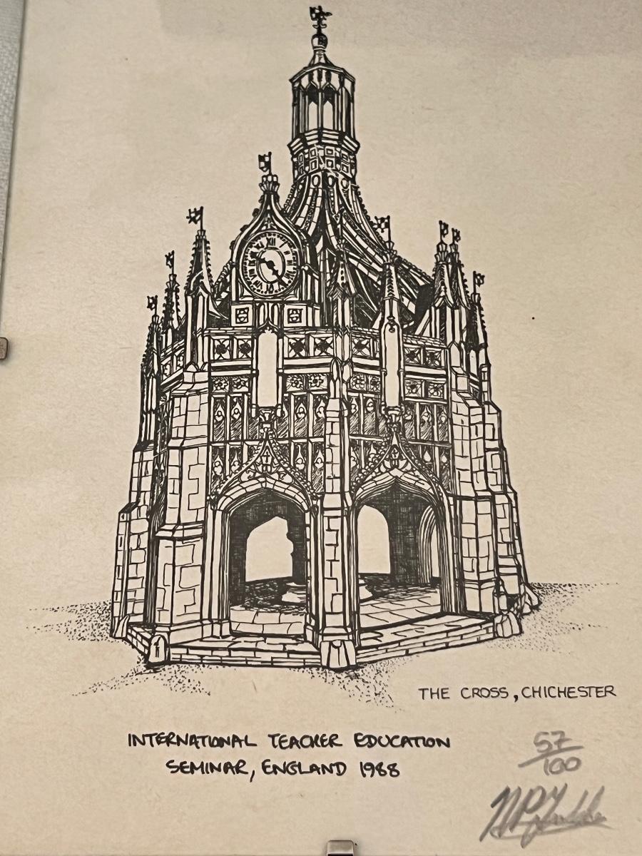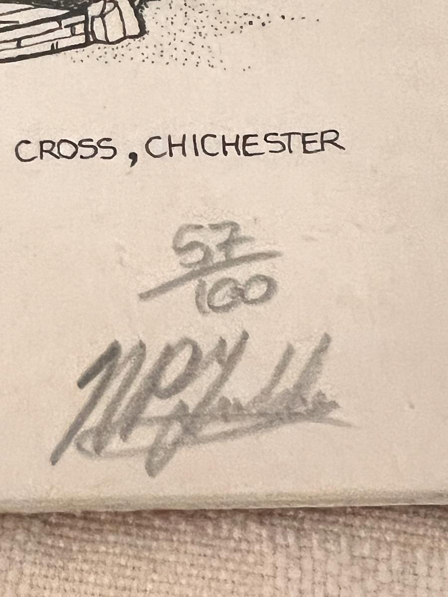 Professionally framed double print of Elizabeth O'Neill Verner art. Signed and numbered print of Chichester Cross. There is a personal note glued to the back of the frame.