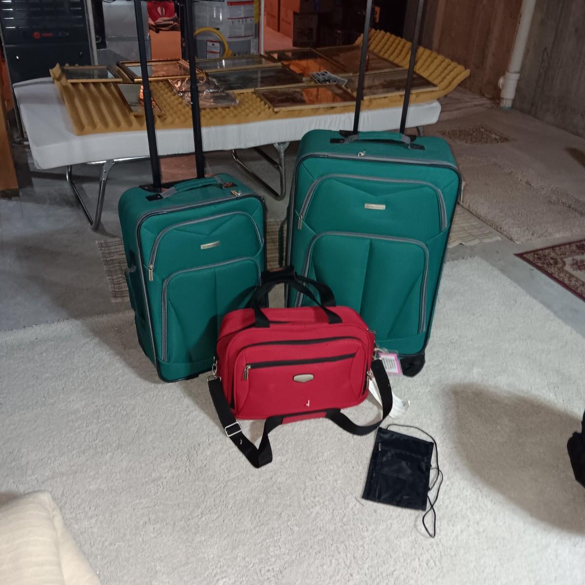 2 PIECE LUGGAGE ON 2 WHEELS EACH AND A CARRY ON BAG