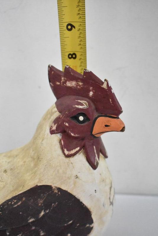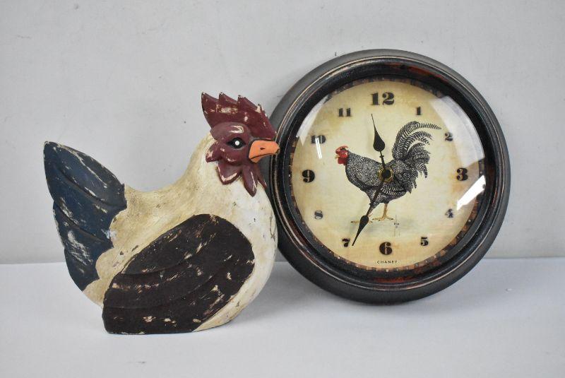 2 Piece Rooster Decor: 1 Clock & 1 Hand-Painted Wooden Rooster