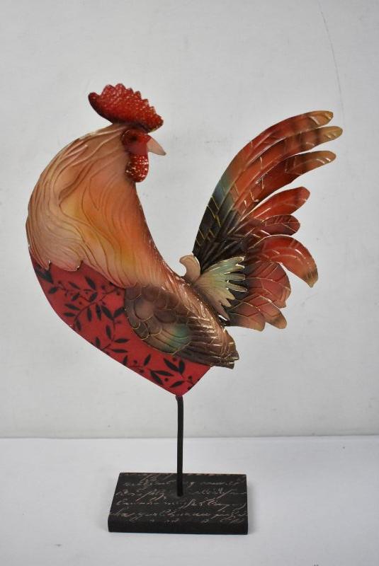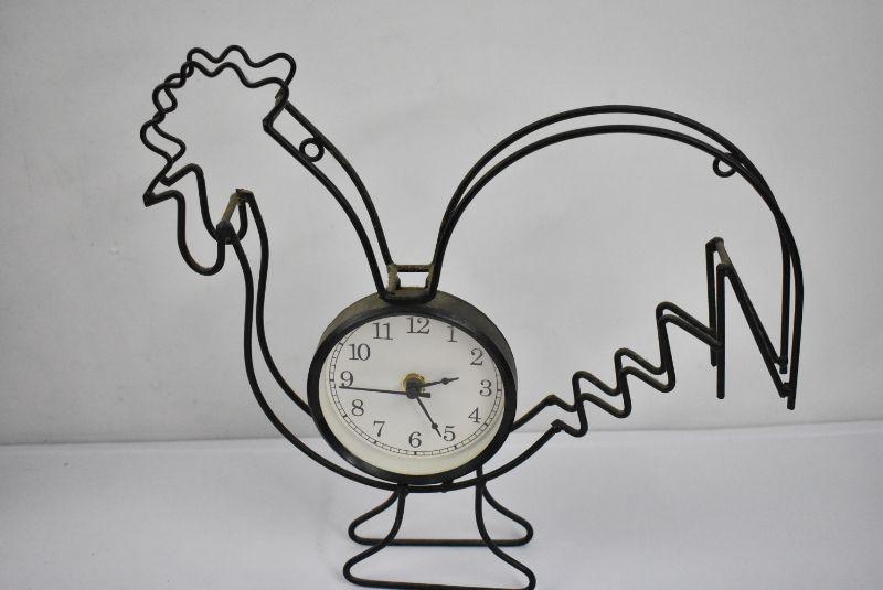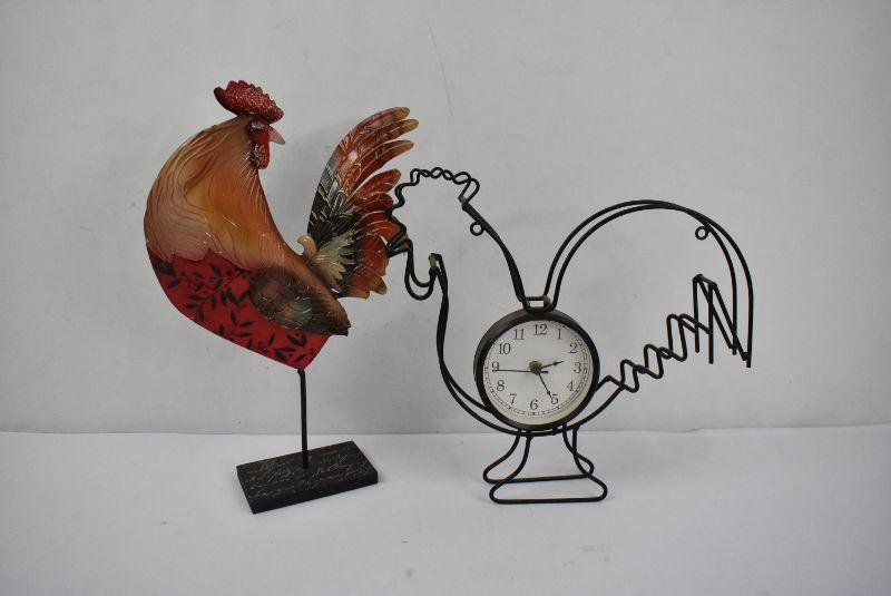 2 Piece Rooster Decor: 1 Metal Stand Rooster & 1 Metal Rooster Outline Clock