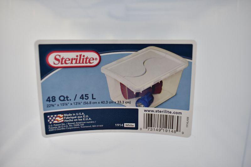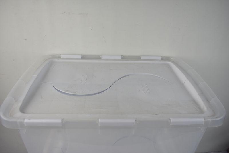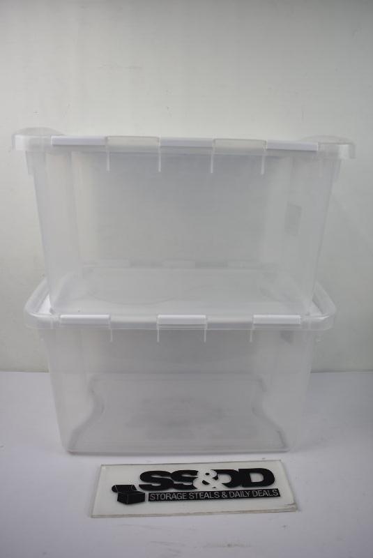 2 Piece Sterilite Storage Bins: Clear with Hinged White Lids, 48 Quarts Each