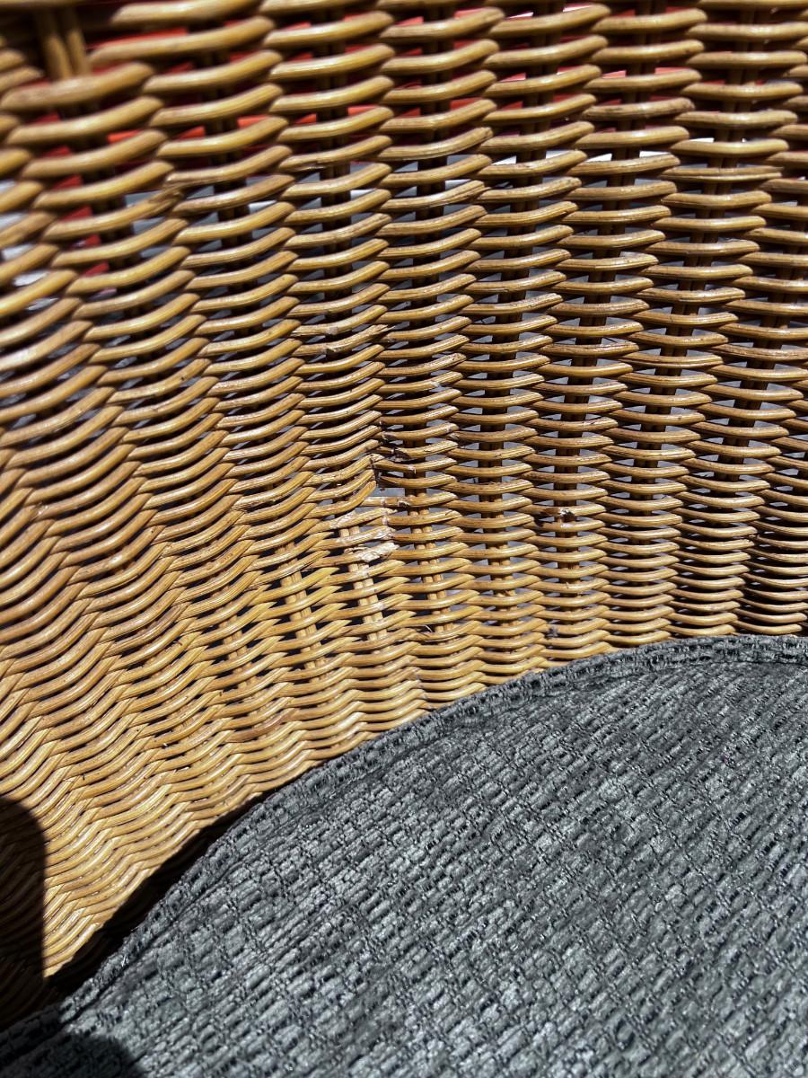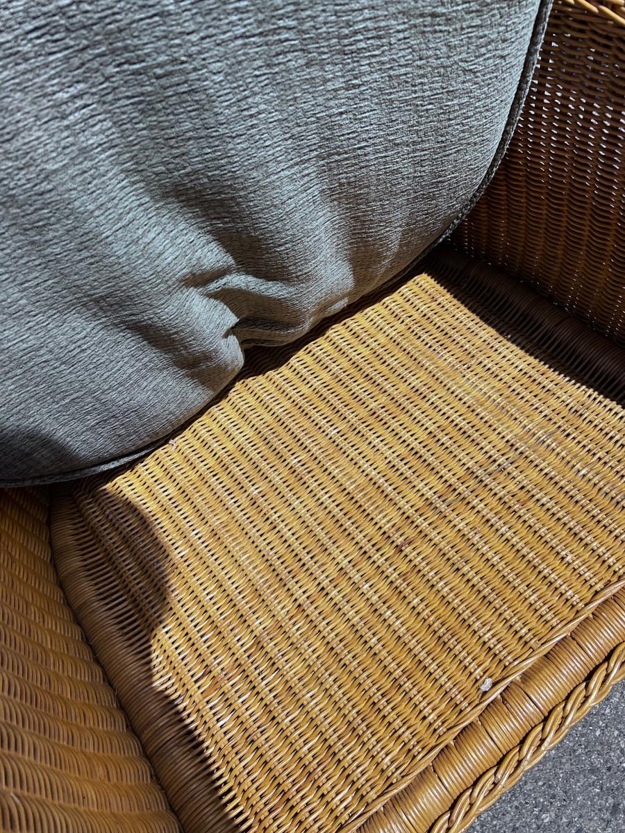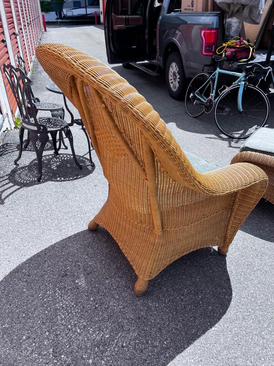 2 Piece Wicker Chair with Ottoman and Light Green Cushions