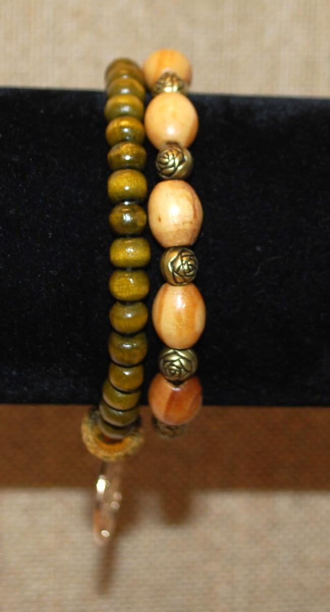 2 Piece Wood/Tree Themed Expandable Bracelet Set 2" Diameter